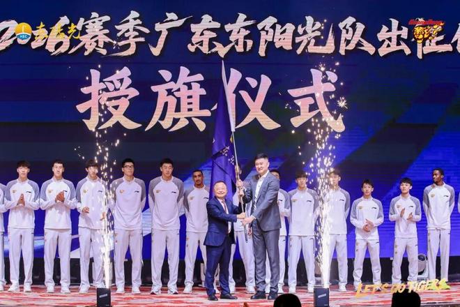 東陽(yáng)光集團(tuán)董事、總經(jīng)理唐新發(fā)先生親手將出征戰(zhàn)旗鄭重交付廣東東陽(yáng)光隊(duì)主教練杜鋒,寄予球隊(duì)新賽季再奪佳績(jī)的殷切厚望。隨后,杜指導(dǎo)揮舞旗幟,全場(chǎng)高呼“LET'S GO TIGERS”,助力華南虎朝著更高目標(biāo)邁進(jìn)。